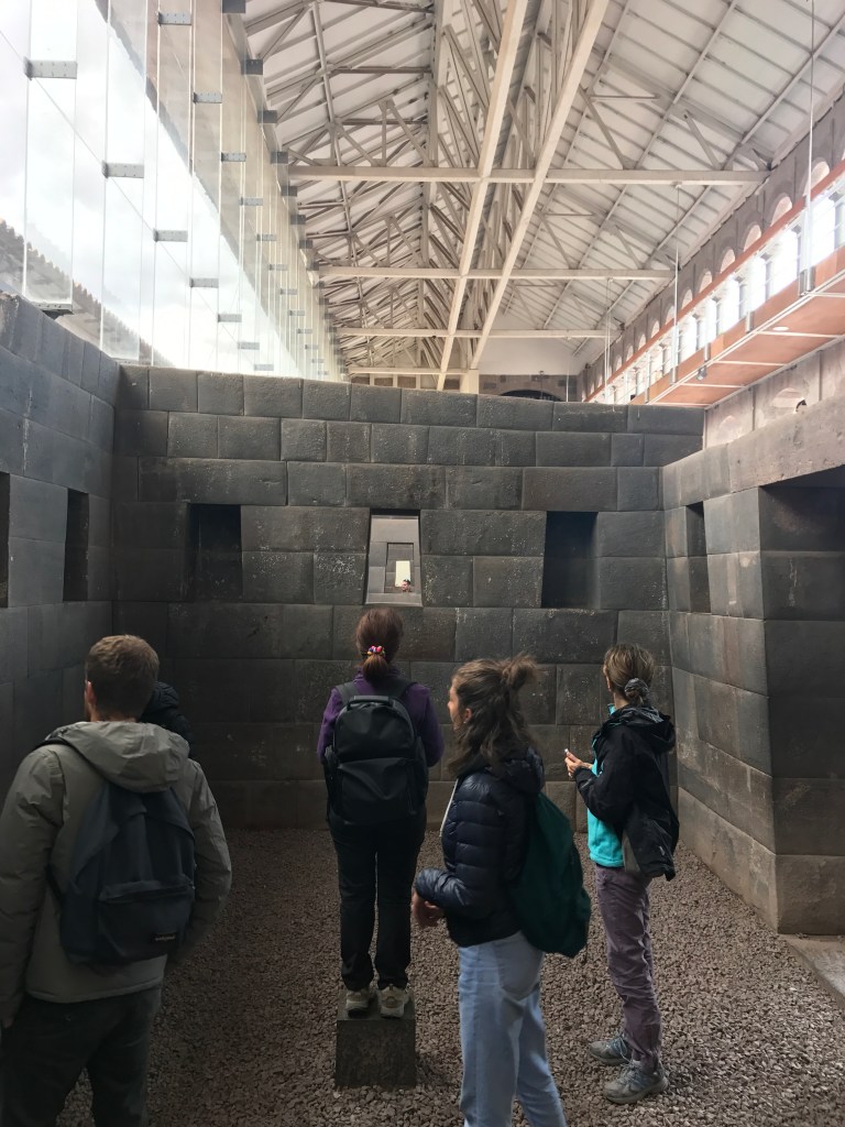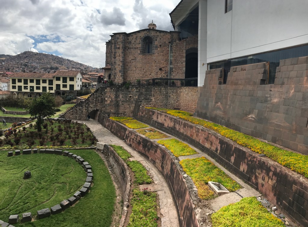 The temple grounds themselves were stunning. Lush gardens framed the ancient walls, with flowers blooming against the backdrop of centuries-old stone. It was peaceful to walk around, despite our still sore legs. The once golden walls must have gleamed in the sunlight, a beauty worthy of the Sun God it was built to honor. The gold is long gone, stripped away by conquerors, but the bones of the Incan temple remain.