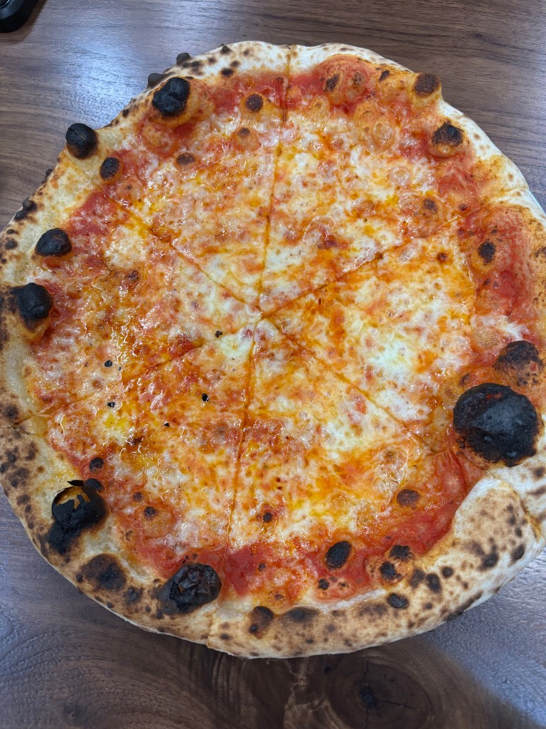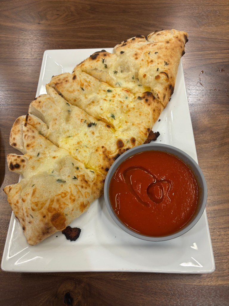 We got cheese bread to start and we also tried the cheese and the pepperoni pizza. We paid $2 for two sides of ranch. The ranch was good but very strong on the dill. The cheese bread had garlic chunks in it. That’s not ever a pleasant thing to bite into, I’m pretty sure it’ll take a dental cleaning to get rid of the garlic taste in my mouth. Despite that, the cheese bread was really good! The pepperoni was too spicy for me, but both pizzas were really good and used high quality ingredients. The crust was very light and delicious.
