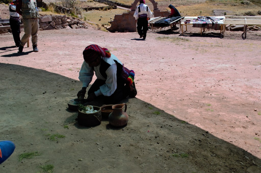 After the demonstration, three men and one woman performed a lively dance accompanied by pipes and drums. Their energy, combined with the backdrop of the Andes and the shimmer of Lake Titicaca, made the moment unforgettable.