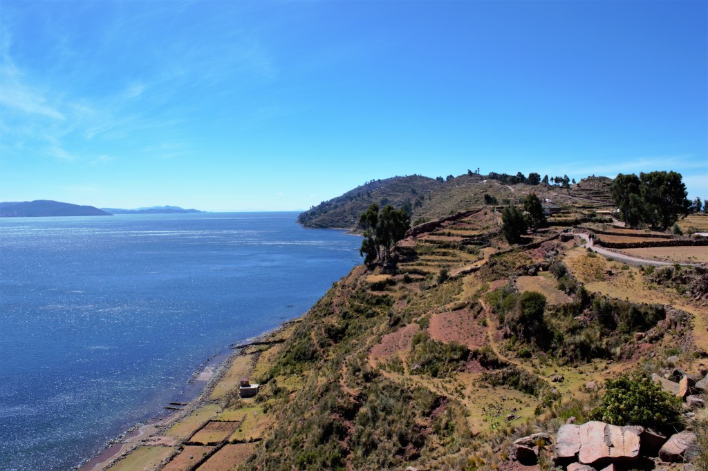 The island’s terraced farmland reminded me of Machu Picchu, layered with care and history. We walked along a pathway built by the locals using funds from tourism, surrounded by stunning lake views at every turn. I couldn’t resist stopping for photos. I’m a sucker for a good picture spot, and Taquile offered them in abundance.