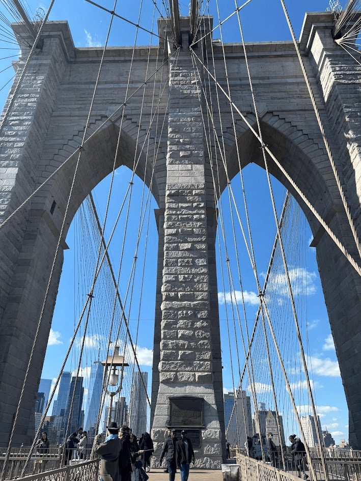 The iconic spot in DUMBO on Washington Street, between Water Street and Plymouth Street. A perfect spot to see the Brooklyn Bridge framed between buildings!Our “romatic” walk on the Brooklyn Bridge